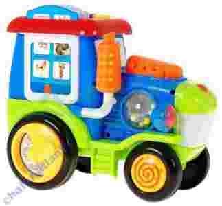 Pojazd jest w żywych nasyconych barwach z elementami wzbudzającymi zainteresowanie małego dziecka.(koraliki , przyciski , ślimaki itp.)a także z efektami dźwiękowymi i napędem. Wprowadza dziecko w dobry nastrój wzbudza jego ciekawość i potrzeby poznawcze.