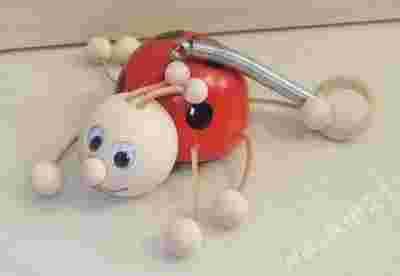 ZABAWKA na sprężynce FIGURKA Z DREWNA BIEDRONKA