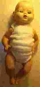 lalka wykonana z tworzywa sztucznego, posiada urządzenie mechaniczne które imituje płacz - działa po przechyleniu lalki , także otwiera i zamyka oczy