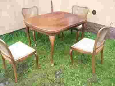 Zestaw mebli ludwik XVI przywiezione z Niemiec.100% sprawne.W zestaw wchodzi stół i 4 krzesła ludwik XVI. Stół rozkładany duży mocny stabilny.Drewno solidne zdrowe.Zestaw posiada minimalne otarcia gdyż używany.Śliczny wygląd okazja ludwikowska.Krzesła stabilne drewno mocne zdrowe.Siedziska wygodne.Materiał przybrudzony.Krzesła posiadają otarcia gdyż używane.Kolor jak na foto.Rafia na krzesłach jest cała.
