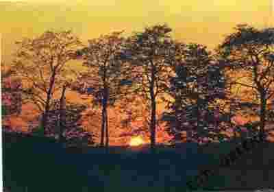 ZACHÓD SŁOŃCA DRZEWA NATURA LAT 90 FP 6472