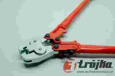 Zaciskarka do Spinek TRÓJKA narzędzie służy do profesjonalnego łączenia ogrodzeń panelowych z użyciem spinek nierdzewnych. Lekka i zwarta konstrukcja głowicy umożliwia zaciskanie spinek w miejscach trudnodostępnych (np. łączenie paneli pod kątem 90o bez użycia słupka). Budowa zaciskarki wymaga użycia niewielkiej siły podczas pracy.