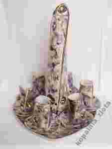 Komplet w dobrym stanie, jedynie 2 malutkie ubytki na talerzykach i pęknięty korek (nie widać od zewnątrz) - zdjęcia