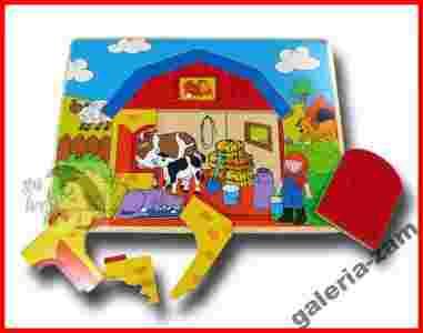 ZAGRODA WIEJSKA puzzle drewniane UKLADANKA tło