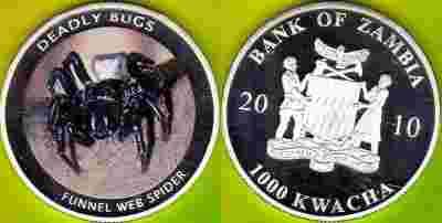 ZAMBIA 1000 Kwacha 2010 r. FUNNEL WEB SPIDER - Ag