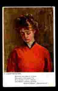 Zamyślona w czerwonej kreacji mal. T. Axentowicz