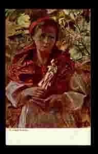Zamyślona z statuetką mal. T. Axentowicz