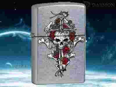 $$ ZAPALNICZKA ZIPPO 0412 SKULL WITH ROSE N DAGGER