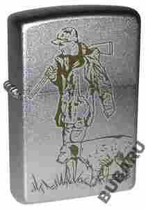 ORYGINALNA ZAPALNICZKA AMERYKAŃSKIEJ FIRMY ZIPPO- "MYŚLIWY Z PSEM",satin chrome