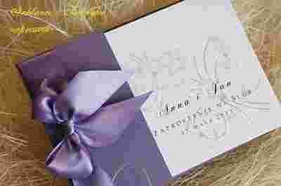 Zaproszenie ozdobione satynową kokardką o szerokości 25mm w wielu odcieniach do wyboru: