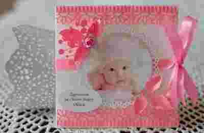Oferowane zaproszenia wykonujemy z najwyższej jakości materiałów, precyzyjnie i z dbałością o najmniejszy szczegół. Niewątpliwym walorem jest ich przestrzenna forma, która wyróżnia nasz projekt elegancją i przełamuje powszechne, "płaskie" zaproszenia. Zdjęcie Państwa dziecka, podniesione na koronkowej serwecie, już na wstępie przykuwa uwagę, a ozdobne bordery i kompozycje z kwiatów i listków nadają projektowi delikatności. Całości dopełnia tag z "Zaproszeniem na Chrzest Święty" Państwa dziecka.