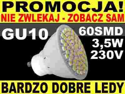 Energooszczędna 60 diodowa żarówka reflektorowa - zamiennik żarówki halogenowej GU10, 30000 godzin pracy, barwa światła - biała ciepła (3000K-3500K), bardzo wydajna, miniaturowa