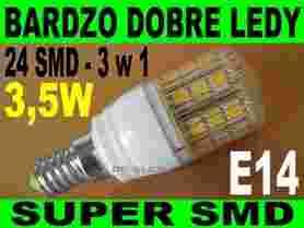 Energooszczędna 24 diodowa żarówka - zamiennik żarówki halogenowej z trzonkiem E14, 30000 godzin pracy, barwa światła - biała ciepła (3000K-3500K), bardzo wydajna, miniaturowa