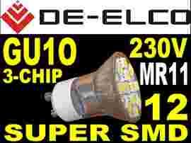 Energooszczędna 12 diodowa żarówka reflektorowa - zamiennik żarówki halogenowej GU10, 30000 godzin pracy, barwa światła - biała ciepła (3000K-3500K), bardzo wydajna, miniaturowa