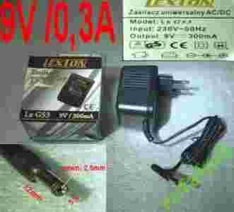 ZASILACZ 9V 300mA STAB. uniwersal wtyk5x2Nowy p/FV