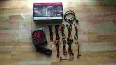 Zasilacz posiada odpinane kable oraz czerwony wentylator z regulacją obrotów. |