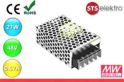 Oferujemy Państwu zasilacz impulsowy RS-25-48 marki Mean Well z grupy zasilaczy G3, serii RS-25 przeznaczony do pracy w systemach automatyki i elektroniki przemysłowej. Seria ta oferuje wachlarz napięć od 3,3 – 48V. Cechuje je ergonomiczna konstrukcja, wysoka sprawność, SZEROKI ZAKRES TEMPERATURY PRACY (-20°C do 70°C). Możliwy jest także montaż na szynę DIN poprzez zastosowanie specjalnego mocowania.