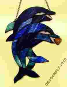 ZAWIESZKA WITRAŻ TIFFANY DELFINY Z BURSZTYNEM