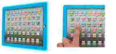 Tablet wykonany z wysokiej jakości plastiku z płaską powierzchnią do naciskania, z namalowanymi obrazkami funkcyjnymi. Dodatkowo posiada wysuwane nóżki, które pozwalają postawić tablet na stole.