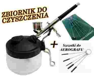 Oferta dotyczy bogato wyposażonego zestawu, składającego się z zbiornika do czyszczenia aerografu, szczotek oraz drutów. Druty pasują do każdego typu aerografów. Służą do czyszczenia dyszy od 0,2 do 0,8mm