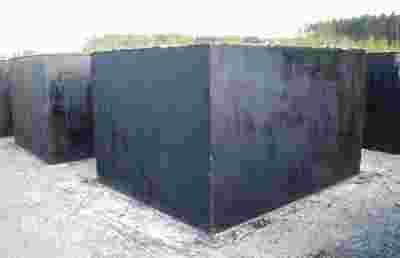 Zbiornik wykonany jest z betonu własnej produkcji klasy B-25, z dodatkiem płynów wodoszczelnych, zbrojony kratką zbrojeniową ze stali żebrowanej i zabezpieczony z zewnątrz izolbetem (masą asfaltowo-kauczukową). Zbiorniki podczas zalewania betonem są odpowiednio wibrowane celem zagęszczenia betonu co wzmacnia jego wytrzymałość i szczelność.