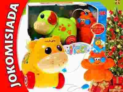 Do wyboru proponujemy Państwa maluszkom uroczego misia lub pieska. Nowe, uroczy zwierzak zachwyci każdego maluszka, który będzie umiał już samodzielnie chodzić ze swoim pupilem na spacer. Zabawka sterowana jest za pomocą pilota. Na pilocie są dwa przyciski do poruszania zwierzątkiem. Po naciśnięciu guzika na pilocie zabawka rusza ogonkiem i kręci główką, podczas poruszania się również gra melodie i wydaje odgłosy.Zwierzaczek jeździ do przodu i do tyłu. Kolorowy spacerujący, zdalnie sterowany zwierzak zapewni uśmiech na każdej małej buzi. Świetna zabawa gwarantowana. Pilot w kształcie motylka przystosowany jest do małych rączęk dziecka, co ułatwia sterowanie zabawką. Bawiąc się dziecko rozwija zdolności motoryczne, planowanie ruchów i pobudza zmysły. Zabawka zdalnie sterowana posiada kabel, który łaczy zabawkę z pilotem. Zabawką można sterować na krótkim kabelku lub sobie przedłużyć znajdującym sie w zestawie przedłużaczem. Rewelacyjny pomysł dla maluszka, które uwielbia spacerować ze zwierzątkiem.