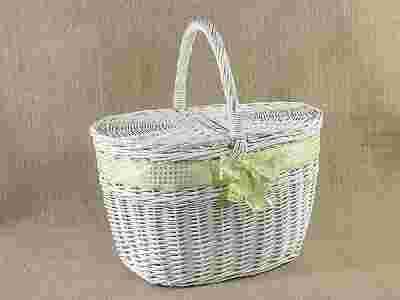 ZDOBIONY WIKLINOWY KOSZYK NA ZAKUPY PIKNIK BIAŁY