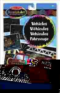 Ciekawy zestaw do zabawy plastycznej i ćwiczenia sprawności manualnej. Zabawa polega na zdrapaniu wierzchniej czarnej warstwy, aby powstał ciekawy obrazek. Ułatwieniem są białe linie nadrukowane na każdej podkładce z czterema pojazdami: