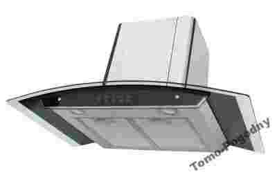 okap wykonany jest z giętego szkła hartowanego oraz szlifowanej stali nierdzewnej, a jego