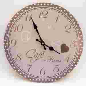 Zegar ścienny Cafe de Paris, wykonany z płyty, oklejonej folią z nadrukiem.