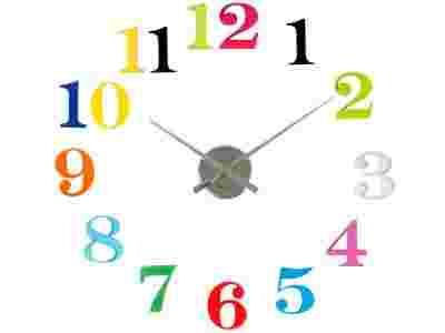 Wskazówki z mechanizmem wieszane są na haczyk natomiast cyfry wieszamy za pomocą taśmy dwustronnej dołączonej do zestawu, według własnej koncepcji.