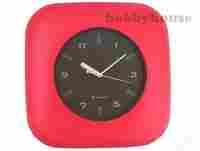 Nowoczesny duży zegar ścienny w kolorze czerwonym z czarnym cyferblatem