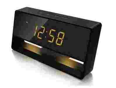 w budzik z funkcją drzemki, posiada duży i czytelny wyświetlacz w kolorze pomarańczonym który dzięki czujnikowi światła dostosowuje intensywność wyświetlacza LED oraz nastrojowego oświetlenia.