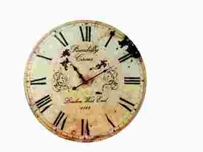 Ogromny drewniany zegar o średnicy 60 cm.