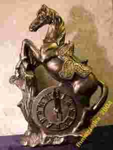 Zegar jest umieszczony pod kopytami stojącego na tylnych nogach konia. Doskonałe wykonanie i odwzorowanie pięknego konia z "brązu".