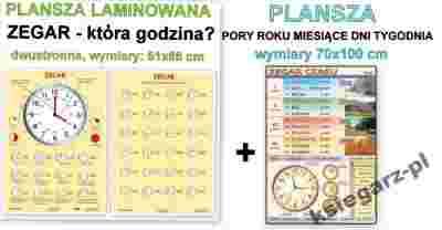 Prezentowana tu plansza doskonale sprawdzi się jako pomoc w nauce odczytywania godziny. Pokazuje ona budowę zegara tarczowego, a następnie przedstawia różne sposoby zapisywania godzin. Na odwrocie znajdują się zegary (klasyczny i elektryczny), z których dziecko odczytuje godzinę, utrwalając tę umiejętność.