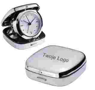 Zegar podróżny metalowy z grawerem logo 25 szt.