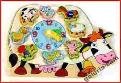 ZEGAR puzzle drewniane UKLADANKA, krowa KRÓWKA