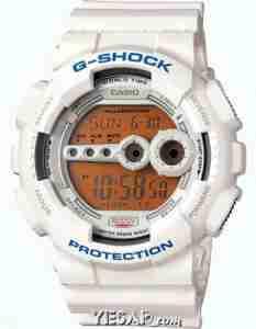 Casio G-Shock GD-100 to zegarek z mechanizmem kwarcowym zasilany baterią. System antywstrząsowy sprawia, że żywotność zegarka jest znacznie dłuższa. Ma możliwość jednoczesnego pomiaru czasu w wielu różnych strefach czasowych na podstawie danych największych miast na świecie. Podświetlenie przez dwie diody LED sprawia doskonałą czytelność w każdych warunkach.