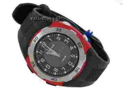 Zegarek zaprojektowany dla osób prowadzących aktywny styl życia . Koperta dobrze dopasowana do paska , szkło syntetyczne . Pasek szeroki w kolorze czarnym , wykonany ze specjalnego miękkiego latexu . Koperta czarno-czerwona z metalową wstawką .Tarcza grafitowa - podświetlana , cyfry bardzo dobrze czytelne , z boku koperty znajduje się wbudowana mała latarka , która daje mocne światło ( patrz ostatnie zdjęcie ) . Można np. poświecić sobie na zamek w drzwiach , aby bez problemu trafić kluczem . Zegarek jest wodoszczelny , można w nim pływać i nurkować , ale nie na dużych głębokościach , wszystko jest opisane w instrukcji obsługi , która jest załączona do zegarka .