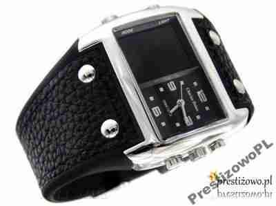 Zegarek męski Charles Delon 4284/06 Iluminator. Zegarek męski z paskiem. Tarcza w kolorze czarnym sygnowana logo producenta. Wyświetlacz LCD w kolorze czarnym, negatyw. I L U M I N A C J A cyferki podświetlane. Koperta metalowa (znal) w kolorze srebrnym. Wskazówki srebrne polerowane. Zapinka metalowa w kolorze srebrnym sygnowana logo producenta. Szkiełko mineralne odporne na zarysowania. Alarm, stoper, datownik, kalendarz, wyswietlanie czasu 12AM/PM lub 24 godzinny. Wieczko stalowe, zegarek zabezpieczony uszczelką pod wieczkiem aby ograniczyć dostęp wilgoci i zanieczyszczeń. Odporny na przypadkowe zachlapania. Nie wolno zanurzać w wodzie. W zegarku osadzony został niezawodny mechanizm kwarcowy "MIYOTA" 2035 produkowany przez "Citizen Watch, LTD" zasilany baterią sr-626 (srebrowa). Czas działania na jednej baterii średnio 2 lata.