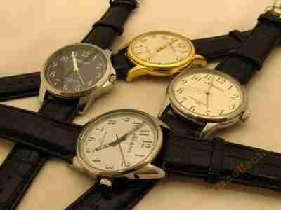 3. Złoty kolor koperty, srebrzysta tarcza, czarny pasek, fosforyzujące wskazówki.
