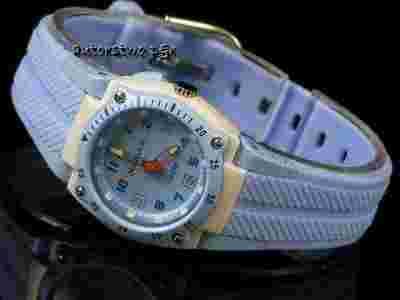 Koperta w kolorze szaro-niebieskim .Tarcza niebieska , cyfry ciemne , dzięki temu są dobrze czytelne . Wskazówki oraz indeks powlekane powłoką fluorescencyjną i świecą po naświetleniu przez światło dzienne . Pasek w kolorze niebieskim , wykonany z wysokiej jakości tworzywa syntetycznego . Tarcza podświetlana w kolorze morskim .