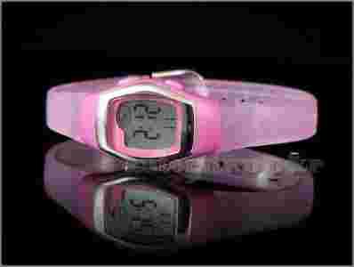 Koperta w kolorze ciemnego różu z srebrną wstawką . Wyświetlacz dobrze czytelny , duże cyfry . Pasek również w kolorze różowym - lekko przeźroczysty   , wykonany z wysokiej jakości tworzywa syntetycznego .