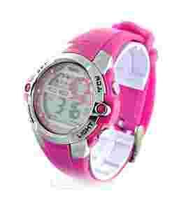 Koperta zegarka wykonana ze stali oraz z twardego tworzywa sztucznego w kolorze srebrno - różowym na czarnym sylikonowym pasku, dekiel wykonany ze stali nierdzewnej, w zegarku można pływać dzięki wysokiej wodoszczelności. Wytrzymały model dla aktywnych dzieciaków...