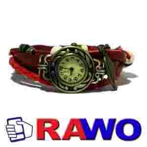 Zegarek stal skórzany bransoletka czerwony damski