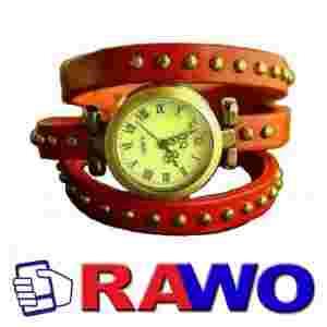 Zegarek stal skórzany bransoletka czerwony damski