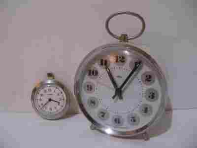 ZEGARKI z PRL:BUDZIK PRIM i KIESZONKOWA RUHLA.