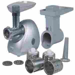 Nowoczesna maszynka do mielenia wyposażona w potężny, wysokowydajny silnik o maksymalnej mocy 1400 W, dla której przerobienie 1,5 kg mięsa w ciągu minuty to drobnostka. Zaopatrzona w trzy sita o średnicy od 2,7 do 8 mm, doskonale nadaje się do mielenia wszelkich mięs, warzyw, maku, czy tez serów. Dołączona szatkownica posiada cztery tarki: do wiórek cienkich, do wiórek grubych, do przecierania, oraz do cięcia w plastry.