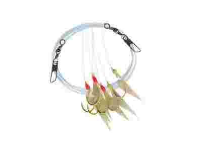 Zestaw do łowienia śledzi. W komplecie sześć troków ze sztuczną przynętą i ostrymi hakami.